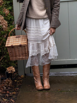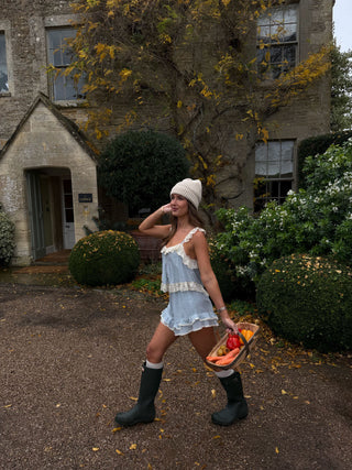 Our latest arrivals styled for a weekend in the countryside. Think soft palettes with romantic lace details paired back with a knee high gumboot for wandering.